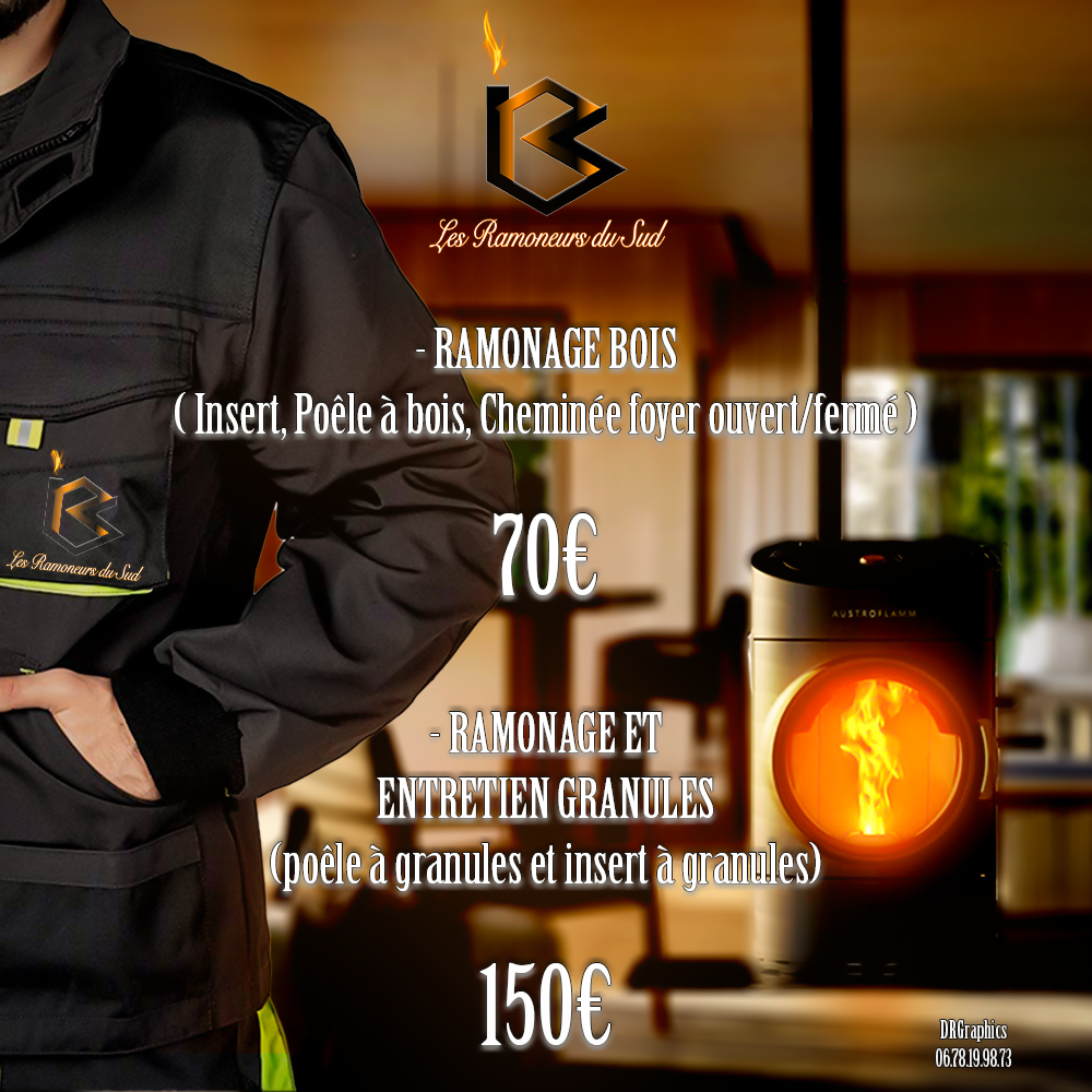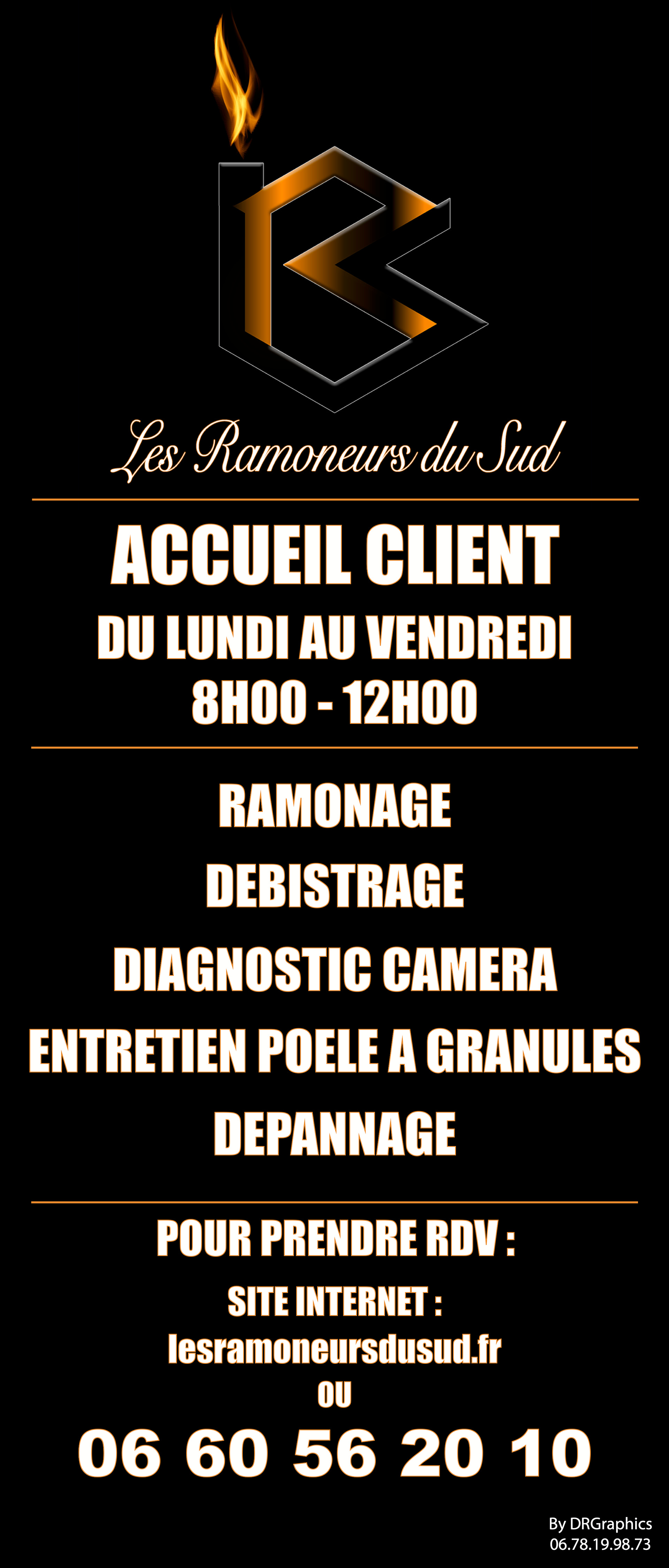 Société de Ramonage dans le sud de la France. Création de logo, carte de visite, bannière, Print pour locaux